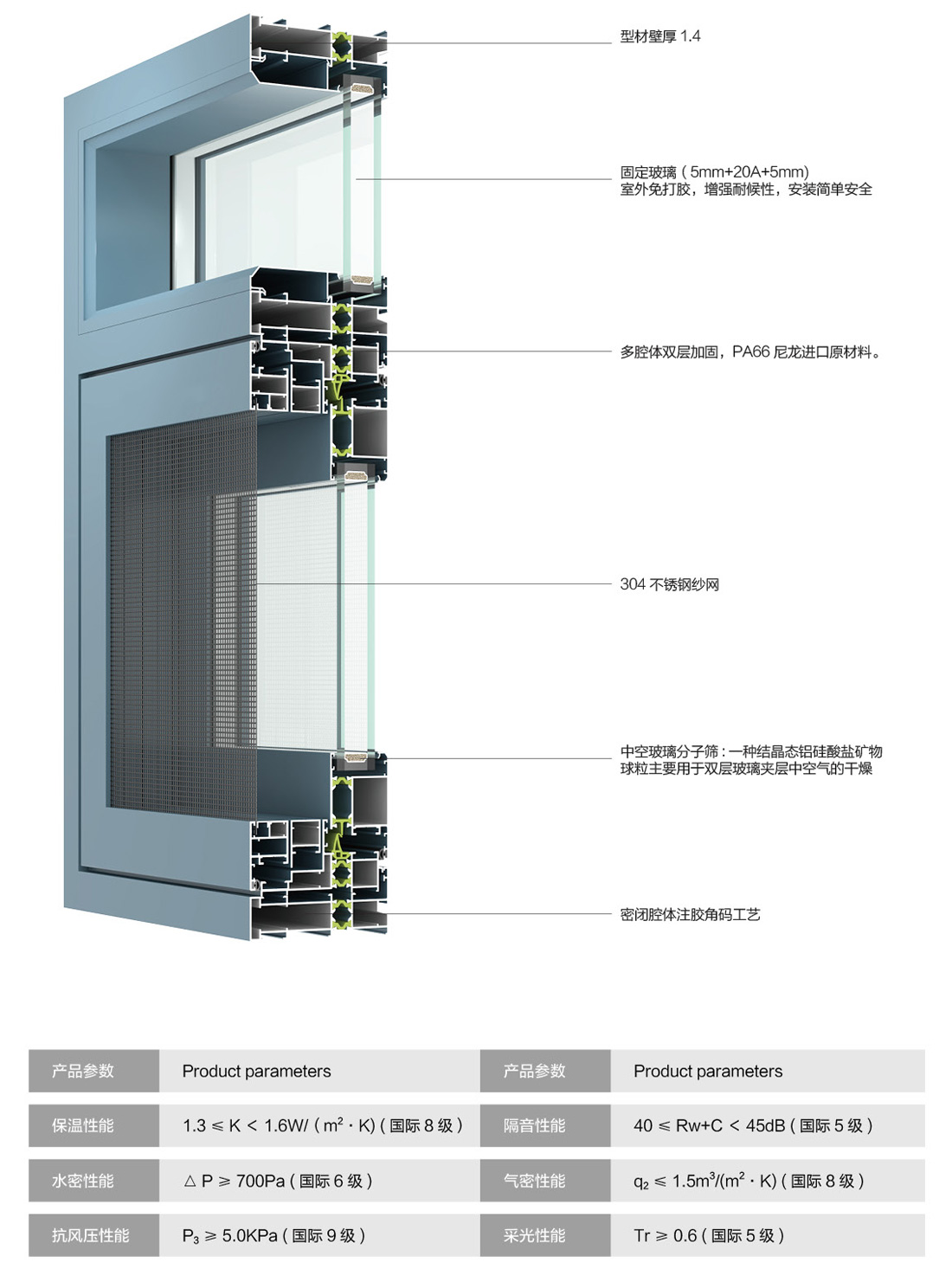 產品型號:93柏林單體靜音系統平開窗 窗紗一體系列