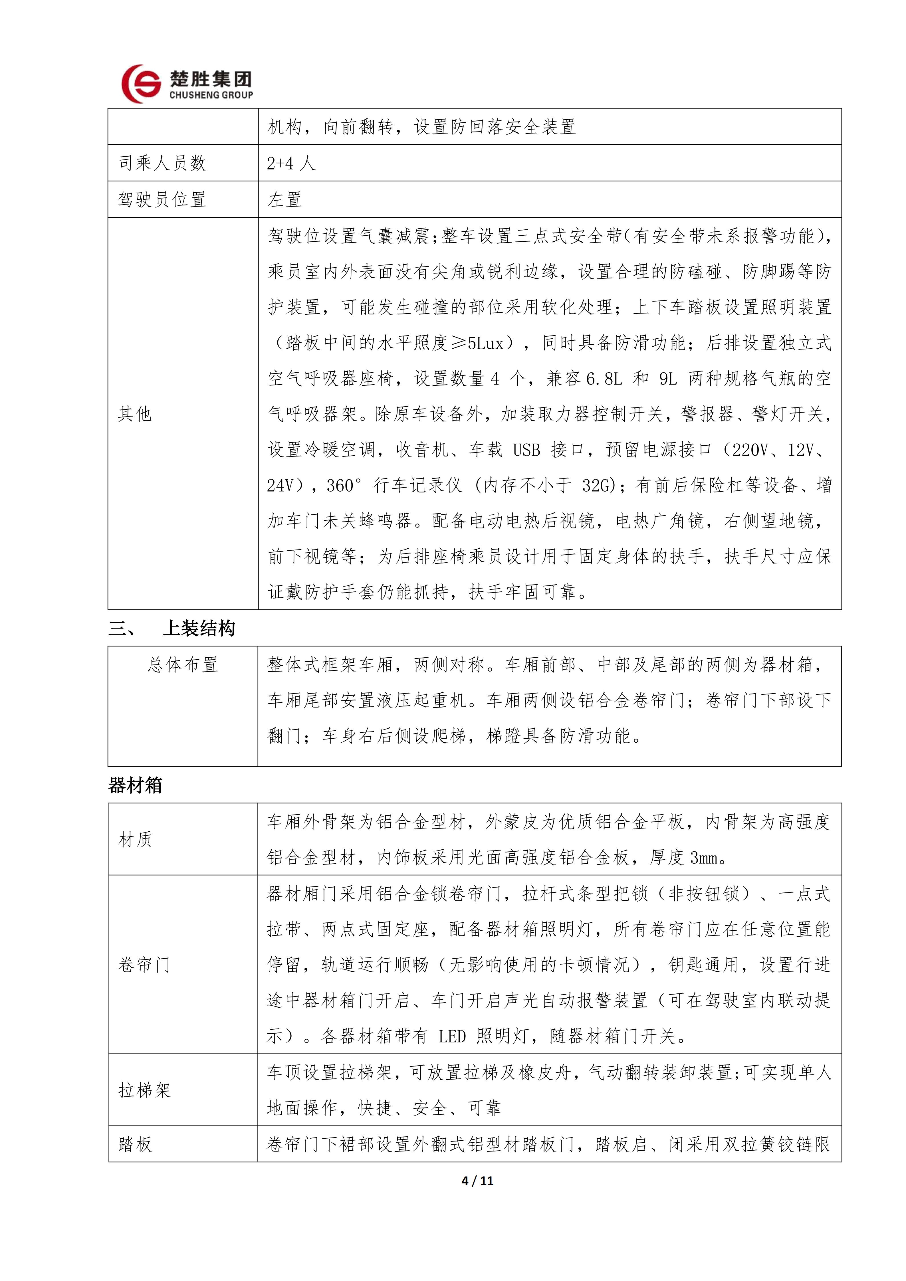 楚勝 CSC5140TXFJY90/S6型搶險救援消防車
