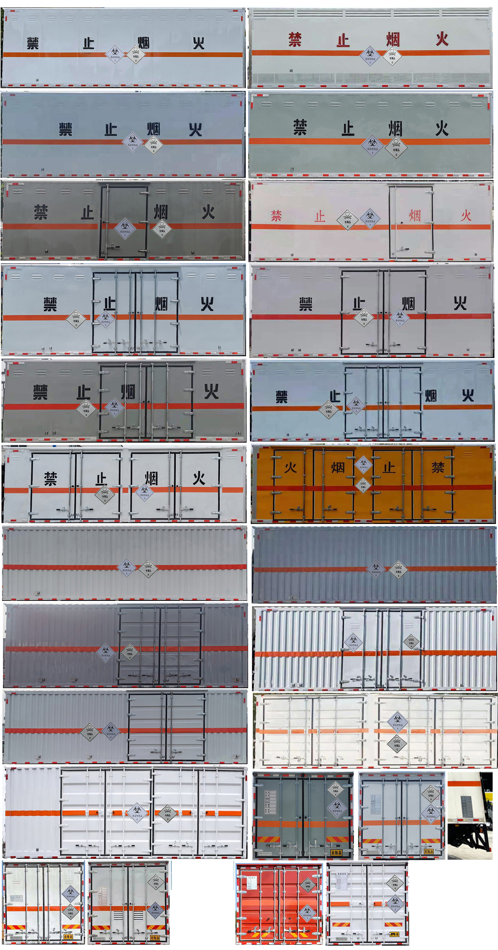 備注該車為危險品運輸車,隨底盤選裝駕駛室,選裝后視鏡,選裝側開門型式及位置,選裝不開側門,選裝不同箱體外觀,選裝后部樣式,選裝后部尾燈架樣式,安裝限速裝置,限速80km/h,車廂頂部封閉且不可開啟;運輸獨立容器(瓶)包裝的貨物;