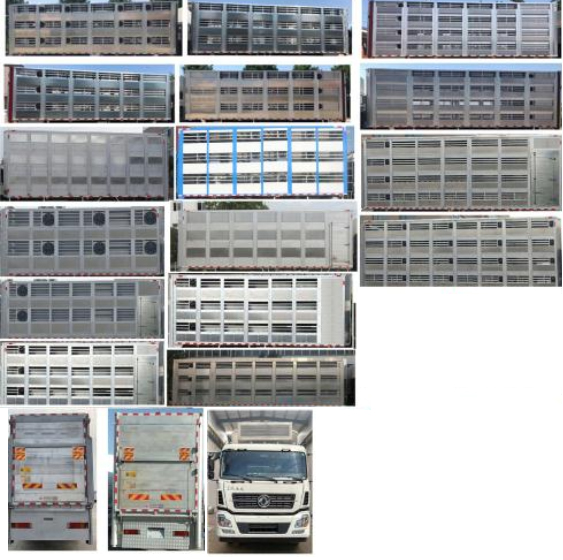 配置  該車專用裝置為箱體,主要用于畜禽運(yùn)輸。車廂底板**頂部高度2560mm。尾板收起狀態(tài)水平長(zhǎng)度為250mm,尾板質(zhì)量為450kg。側(cè)防護(hù)材料為鋁合金,螺栓連接,后防護(hù)材料為Q235,螺栓連接,斷面尺寸(mm):120×100,下緣離地高500mm。安裝有具有衛(wèi)星定位功能的行駛記錄儀。隨底盤選裝駕駛室,選裝制冷機(jī),選裝箱體前部不帶設(shè)備艙樣式,選裝多層及多隔艙樣式,選裝不同外觀。ABS系統(tǒng)**器型號(hào)/生產(chǎn)企業(yè):ABS 8/東科克諾爾商用車制動(dòng)系統(tǒng)(十堰)有限公司,ABS-E 4S/4M/威伯科汽車**系統(tǒng)(**)有限公司。發(fā)動(dòng)機(jī)/油耗值(L/100km)對(duì)應(yīng)關(guān)系為:DDi11E465-60/37.2,DDi11E385-60/37.2,DDi11E430-60/37.2。選裝ETC。