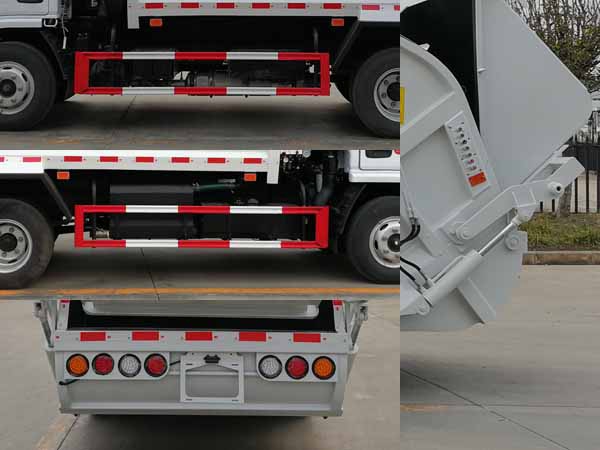 垃圾車箱有效容積6立方米,弧形車廂,材料采用邊3底4mm厚,9支液壓油缸制動,液壓控制操作系統為電動控制和手動控制。手動控制是防止電控發生故障時也能夠正常工作。裝載循環為一鍵操作,車尾左右各一套,駕駛室內部一套電動卸料操作系統,帶后翻轉機構,可掛塑料桶,填充器底部污水收集箱,車箱內的污水可流入其中,在卸垃圾時可通過球閥排出,采用海戰力油缸,揚州中梅的多路閥,CAN操作,其余標配。