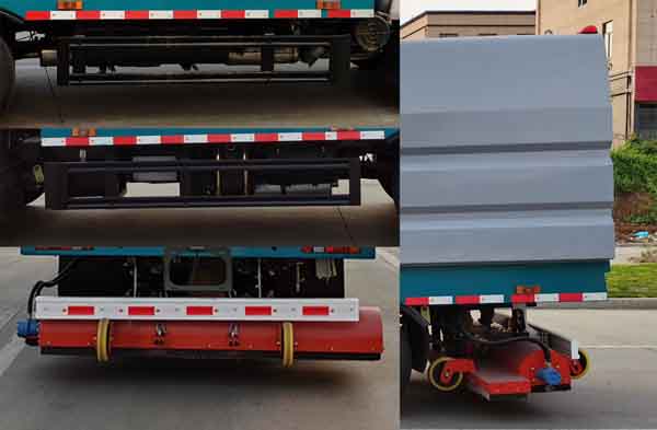 配置  ABS型號:VIE ABS-II;ABS生產企業:浙江萬安科技股份有限公司;選裝描述:選裝前臉、前部燈具、外后視鏡。選裝輪輞外觀;側后防護情況:側防護和后防護材料均采用Q235,側防護連接方式螺栓連接,后防護連接方式為焊接;后防護截面尺寸:100×50mm,下邊緣離地高350mm;專用功能及裝置:該車主要用于道路吸塵,主要專用裝置為箱體,吸塵總成;